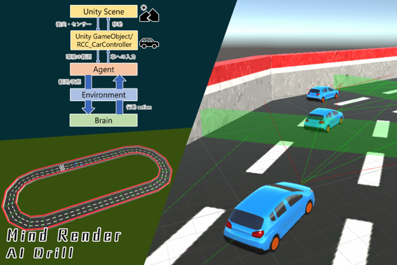自動運転の機械学習をUnityで行い、学習結果を「Mind Render」で試すことができるアセットです。