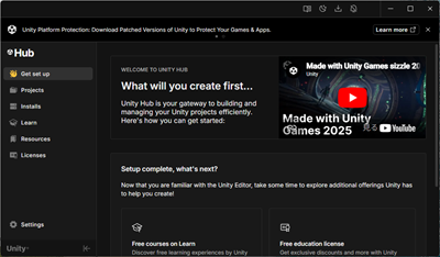 1. Unity Technologiesのウェブサイトから、Unityをダウンロード、インストールします。