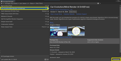 6. 「My Assets」の一覧が表示されるので、「Car Evolusion/Mind Render AI Drill(Free)を選択し、右下の「Download」ボタンをクリックします。