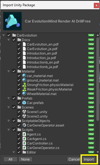 「Mind Render / AI Drill 車の形状進化」は、Unity Asset Storeから無料でダウンロードしていただけます。使用されている手法(遺伝的アルゴリズム)の詳細や、サンプルプログラムの解説などはアセットと一緒に提供されるドキュメントをご参照ください。