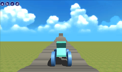 プログラムを実行すると、凸凹道を車が走っていきます。(サンプルプログラムでは完走しません。ぜひ、ご自分のモデルで走破にチャレンジしてみてください)