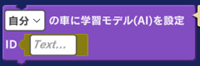 [ID] 任意の文字列を入力します(「evo」など)。同じプログラム内で重複はできず、「[自分]の車に学習モデル(AI)を設定」ブロックのIDと一対一で対応させる必要があります。