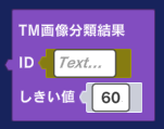 [ID] 任意の文字列を入力します(「矢印」など)。同じプログラム内で重複はできず、「TM画像分類結果」ブロックのIDと一対一で対応させる必要があります。