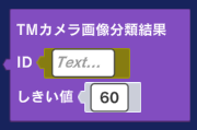 [ID] 任意の文字列を入力します(「矢印」など)。同じプログラム内で重複はできず、「TMカメラ画像分類結果」ブロックのIDと一対一で対応させる必要があります。