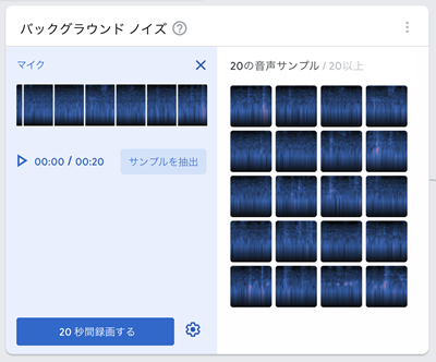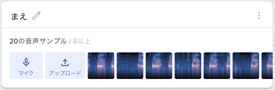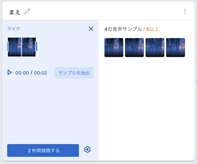 「マイク」を選択し、バックグラウンドノイズと、「まえ」「うしろ」などの音声を録音します。