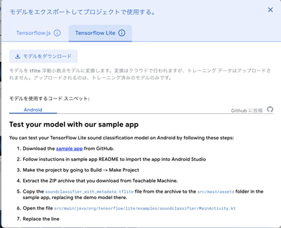 1. Tensorflow Liteを選択し、「モデルをダウンロード」ボタンを押します。