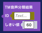 [ID] 「学習モデル(AI)を読み込む」で設定したIDと同じIDを入力します。(例えば「学習(AI)モデルを読み込む」のIDを「VID1」としたら、「TM音声分類結果」のIDも「VID1」とする)