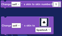 New blocks to change skins have been added. (under the “Technique” category). For example, when adding items like playing cards, shogi pieces, or chess pieces, you can now add them by changing their skin instead of adding each one as a separate object.