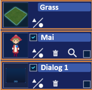 In the object list, buttons for “Change,” “Delete,” and “Detail” now appear for the selected object. (Non-functional items like “Delete” for the background button are not displayed.)