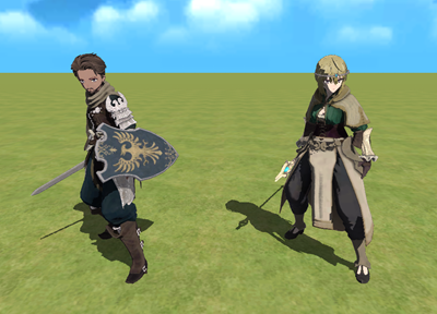 髪型、顔、コスチュームなどのパーツをカスタムできるキャラクターと、武器(剣、杖、盾)を追加しました。