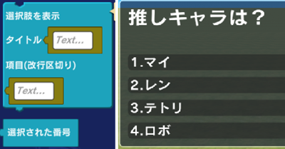 選択肢を表示できるブロックを追加しました。