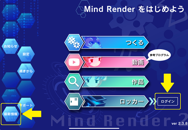 画面左下に、最新情報へのリンクを追加しました。本サイトのお知らせページがブラウザで開きます。